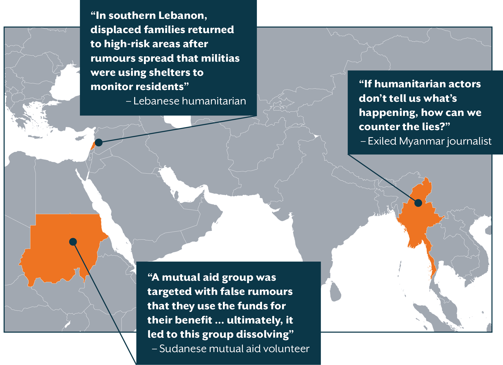 People still make life or death decisions. But they do so based on rumours, incomplete updates or deliberately misleading narratives. In these conditions, aid access, movement and perceptions of risk are shaped as much by information as by material needs.